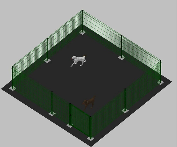 .Recinto-Box Modulare per Cani in Ferro Zincato e Verniciato Verde-con Pali a Tassellare - cm 400x400x142h