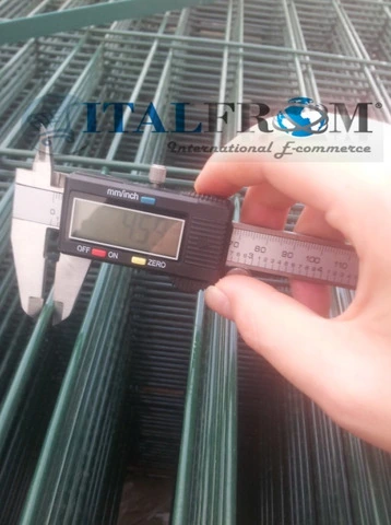 CONSEGNA 24/48 ORE LAVORATIVE-Recinzione modulare in pannelli di filo zincato elettrosaldato e plastificato con poliestere colore verde, diametro esterno del filo 4,5 mm - Maglia 55x200 H mm (interno) e nervature(N°3) orizzontali di rinforzo. Larghezza del pannello disponibile 2000 mm. PRODOTTO MADE IN ITALY Sempre attenta all’evoluzione dei mercati La Italfrom srl ha voluto proporre una recinzione rigida, che è poi una cancellata a tutti gli effetti che si coniuga perfettamente anche per le classiche delimitazioni perimetrali di centri commerciali, parchi, zone residenziali e sportive. Questo Pannello è consigliato con le seguenti altezze di pali: Per pali postati nel terreno o cemento: Altezza pali consigliato: H 200 cm Per pali posati mediante supporti al suolo: Altezza pali consigliato: H 180 cm Dettagli Finitura prodotto: PFZ (Filo zincato + Fosfatazione ai sali di zinco + Plastificazione con poliestere): Il filo utilizzato per produrre questa rete è zincato a caldo in continuo in bagno di zinco per garantire la massima resistenza e durabilità nel tempo al prodotto. Successivamente, dopo aver assemblato il pannello, viene applicato il trattamento di Plastificazione PFZ che prevede 7 fasi di lavorazione che assicurano la migliore qualità del prodotto. La prima fase prevede il degrassaggio (1) per eliminare ogni residuo superficiale di olio, grasso e polvere. Successivamente un’ulteriore lavaggio (2) elimina altre eventuali impurità e residui del degrassaggio. A questo punto inizia il ciclo di fosfatazione : lavaggio con acqua demineralizzata (3) ed applicazione di fosfati di zinco (4). Il prodotto viene poi asciugato (5) in forno a 120° in preparazione alla successiva fase di plastificazione (6) con resine di poliestere puro al 100%. Attraverso la polimerizzazione (7) lo strato di poliestere viene fissato al supporto. SU RICHIESTA PROPONIAMO IL PANNELLO MEDIUM (FILO 5 MM) CON LA LUNGHEZZA DI CM 250MINIMO ORDINE 50 PZ