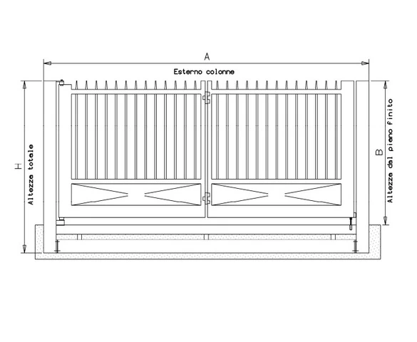 CANCELLO A DUE ANTE FINITURA STANDARD ZINCATO -CON SERRATURA MANUALE- LINEA LAME