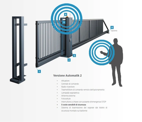 AUTOMAZIONE PER CANCELLI SCORREVOLI AUTOPORTANTI PI 130 Ampia selezione di automatismi a seconda della dimensione del cancello e della sua destinazione. Nell'offerta automatismi da diverse potenze, velocità ed intensità di utilizzo. Tutti i cancelli automatici possiedono il marchio CE che conferma la conformità dei prodotti alla norma PN EN 13241-1. L'opzion...