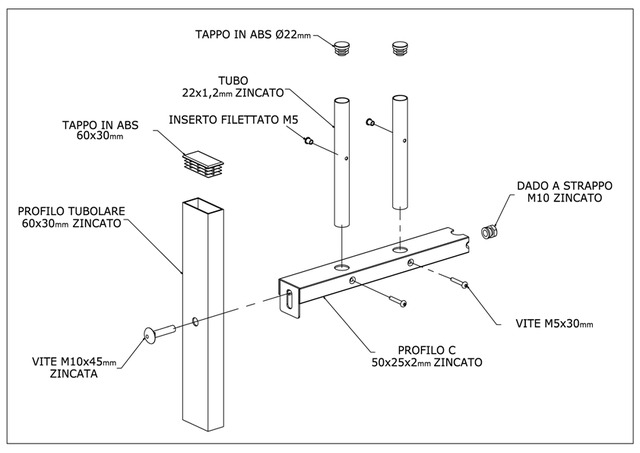 CODICE ARTICOLO: ITALFROM_2750 3 PZ IN PRONTA CONSEGNACONSEGNA 4/5GIORNI LAVORATIVI - Pannello modulare escluso di piantana PRODOTTO ZINCATOCARATTERISTICHE: Gli elementi verticali della gamma Arizona sono collegati al profilo orizzontale mediante bulloni, in modo da non alterare le caratteristiche dell’acciaio. Un ottimo risulatato in termini di rigidità è dato dal profilo a C 50x25 mm che compone i correnti orizzontali del pannello. IL PANNELLO VIENE FORNITO GIA ASSEMBLATO SPECIFICHE TECNICHE: Piantana Scatolare 60x30x2 mm zincato (cementare o tassellare) DA ACQUISTARE A PARTE Elemento orizzontale : Profilo a C 50x25x2 mm zincato Elemento verticale : Tubo mobilio Diam. 22 mm Sp. 1,2 mm zincato Sistema d...