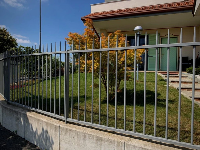 PIANTANA IN FERRO PIATTO ZINCATO 60X7 - A CEMENTARE (COMPLETA DI BULLONERIA)Piantana standard sezionale 60x7 a cementare , per pannelli linea ARIZONA/FLORIDAMateriale : Acciaio S 235 Jr Rivestimento : Zincatura a caldo dopo la lavorazioneBulloneria compresa :2 Bullone inox M8 x 30 a testa tonda completo di dado antifurto per recinzione2 Staffa di compensazione zincata