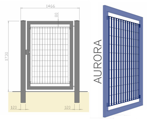 CANCELLO PEDONALE BATTENTE 'AURORA' ZINCATO A CALDO - MISURA : cm 146,6 X 173 h