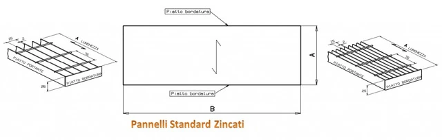 PANNELLO GRIGLIATO ZINCATO A CALDO MAGLIA 25X76 mm. ELETTROFORGIATO CALPESTABILE Varie MisureI grigliati sono un prodotto fondamentale nella realizzazione di superfici praticabili sia pedonali che carrabili, piani di caricamento, passerelle, pianerottoli e gradini. Struttura reticolare costituita da barre portanti collegate ortogonalmente a tondi trasversali.L’unione avviene grazie all’azione combinata di elettrosaldatura, senza apporto di materiale e di pressione concentrata sugli incroci. Questo procedimento consente la totale compenetrazione tra barre portanti e barre trasversali.SPESSORE PANNELLO 2 mm. - MAGLIA 25X76 MMMateriale Acciaio S 235 JR UNI EN 10025 Rivestimento Zincatura a caldo UNI EN ISO 1461 Zincatura a caldo ( o galvanizzazione per immersione a caldo): si tratta di un rivestimento che si forma con l'immersione dell'acciaio nello zinco fuso e crea una lega tra i due elementi.