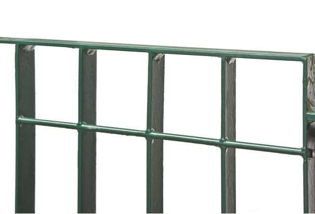 CODICE ARTICOLO: ITALFROM_3810 La recinzione in grigliato elettrosaldato modello CLASSIC ZINCATO E VERNICIATO è costituita con profili  verticali piatto 25x2 mm posti ad un interasse di 69 mm. I collegamenti sono  costituiti da tondi Ø 4,5 mm, aventi interasse di 132 mm. Le bordature orizzontali sono realizzate in piatto bugnato da 25x3,5 mm, piegate alle estremità al fine di creare un supporto per il fissaggio alle piantane ( lunghezza profilo piegato mm 60 con asola 12x24 mm). Tali profili di sostegno sono saldati ai profili verticali mediante procedimento di elettrofusione. N.B. Le piantane sono da acquistare a parte. Per i colori fuori standard c'è un aumento del 30% o Le piantane sono costruite ...