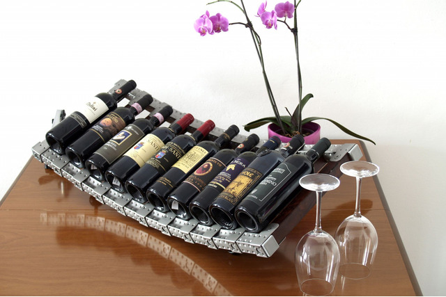 CODICE ARTICOLO: ITALFROM_3029 Elegante espositore per vini realizzato combinando acciaio inox e legno. L’inclinazione base di 11°, regolabile fino a 24° mediante lo spostamento del supporto centrale, permette una ottima disposizione delle 10 bottiglie da 750 ml.I profili metallici sono in acciaio inox sabbiato, i longheroni in legno di faggio tinto mogano, mentre i componenti plastici sono in poliammide colore nero.Dimensione componente montato (LxPxH): 875 x 360 x 200 mmDimensione componente imballato (LxPxH): 875 x 360 x 200 mm CONSEGNA PREVISTA IN 15/20 GG