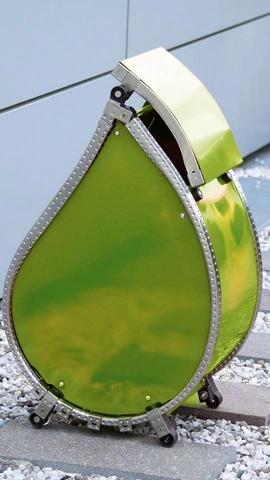 Questo originale elemento a goccia si integra perfettamente con tutta la serie di prodotti SUPERINOX concepita per l’arredo urbano e può essere disposto in batteria per diversificare la raccolta. Grazie ai quattro colori disponibili - verde, rosso, azzurro e giallo - è possibile infatti distinguere la destinazione dei diversi prodotti, oltre a creare un simpatico “punto” di colore all’interno delle zone verdi urbane ed extraurbane piuttosto che nelle svariate collocazioni dove queste piccole oasi ecologiche possono essere inserite. La struttura è dotata di ganci di fissaggio che ospitano comodamente un sacco da 60 litri mentre il frontale è incernierato ed apribile per permettere un’agevole estrazione del sacco pieno. La struttura è inoltre dotata di un tettuccio per proteggere il sacco dalla pioggia.Caratteristiche: I profili metallici sono in acciaio inox sabbiato, le lamiere sono in acciaio zincato e verniciato a polveri termoindurenti mentre i componenti plastici sono in poliammide colore nero. Confezione:Il componente singolo viene fornito assemblato e confezionato in scatola, mentre in caso di composizioni multiple l’imballo varia a seconda della quantità. Dimensione componente imballato/montato (LxPxH):420 x 570 x 940 mmCONSEGNA PREVISTA IN 15/20 GG