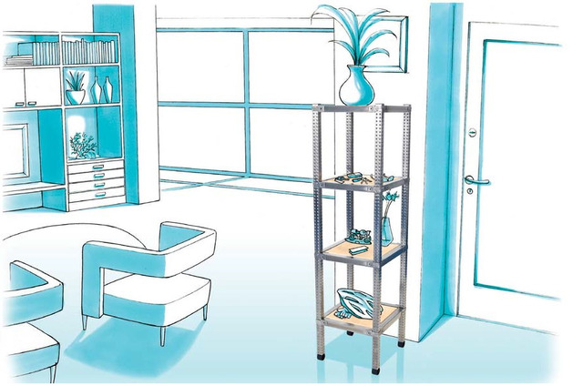 Elemento d’arredo a colonna, multifunzione, in acciaio inox, concepito con quattro ripiani in plastica, ma personalizzabile con piani in vetro o in legno multistrato con doppia impiallacciatura di frassino. ----------------------Modular multipurpose shelf kit made from stainless steel. Its’ standard version is conceived with perforated plastic panels. The shelf kit can be customized with a set of glass shelf panels or with wooden insert panels featuring an ash veneer 460 mm | 380 mm | 1410 mm CONSEGNA PREVISTA IN 15/20 GG