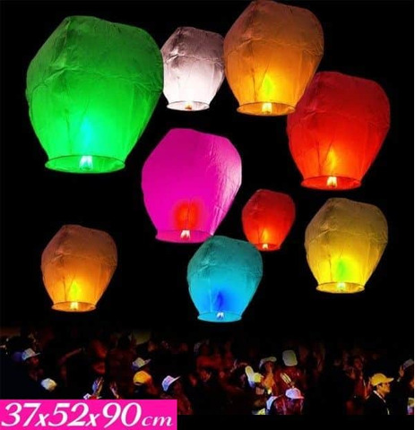 LANTERNA VOLANTE GRANDEMIS. CM 37X52X90CONFEZIONE 6 PEZZI IN BLISTER SINGOLO, 6 COLORI :VERDE,ARANCIO,AZZURRO,ROSA,GIALLO,LILLA.
