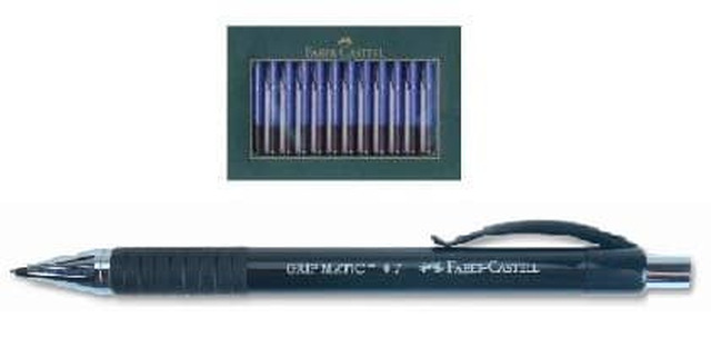 Portamine automatico per mine da mm. 0,7, fusto ergonomico triangolare, dischi in gomma per presa antiscivolo, gomma extra-large con fuoriuscita a rotazione. confezione in couvette espositiva
