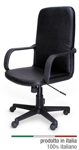CODICE ARTICOLO: ITALFROM_10326 VINCENTPoltrona presidenziale rivestita in pelle sintetica, ideale per gli uffici  e studi medici.Tappezzeria:  pelle sintetica neraMovimento : oscillante con bloccaggio nella posizione di lettura e manopola per la regolazione di intensità del movimento.Elevazione : a gasBasamento : a 5 razze girevole in nylonRuote : libere piroettanti Imballo: scatola 1 pz mis. 710x260x590