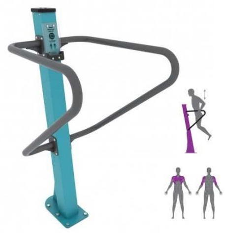 Attrezzo Per Ginnastica All'ApertoN.B. Tutte le attrezzature sono progettate e realizzate in conformità alle specifiche normative di sicurezza UNI EN 1176 - UNI EN 1177Attrezzo per ginnastica all’aria aperta.Struttura in acciaio zincato e verniciato a polveri, disponibile anche in versione inox AISI 304/316 DATI DIMENSIONALI:Altezza totale: cm 132Altezza di caduta: cm