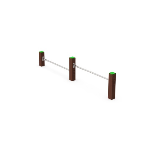 Barra Per Flessioni - Palestra all'apertoIn Plastica Riciclata - Ancoraggio A PavimentoN.B. Tutte le attrezzature sono progettate e realizzate in conformità alle specifiche normative di sicurezza UNI EN 1176 - UNI EN 1177 Attrezzatura fitness per aree all'aperto,barra per flessioni con doppia altezza, realizzata con barre orizzontali in acciaio inox e componenti in PEHD e profili di sezioni variabili in plastica proveniente da raccolta differenziata (certificata PSV da IIP)ferramenta generale in acciaio inox.
