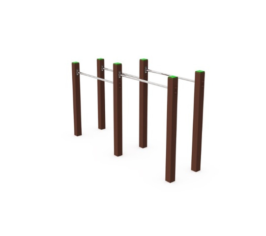 Doppie Barre Parallele - Palestra all'aperto- In Plastica Riciclata - Ancoraggio A PavimentoN.B. Tutte le attrezzature sono progettate e realizzate in conformità alle specifiche normative di sicurezza UNI EN 1176 - UNI EN 1177   Attrezzatura fitness per aree all'aperto Doppie barre parallele, realizzata con barre parallele orizzontali in acciaio inox e componenti in PEHD e profili di sezioni variabili in plastica proveniente al 100% da raccolta differenziata (certificata PSV da IIP) ferramenta generale in acciaio inox.