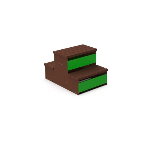 Gradini - Palestra all'aperto- In Plastica Riciclata - Ancoraggio A PavimentoN.B. Tutte le attrezzature sono progettate e realizzate in conformità alle specifiche normative di sicurezza UNI EN 1176 - UNI EN 1177Attrezzatura fitness per attività motorie all'aperto.realizzata con componenti in PEHD e profili di sezioni variabili in plastica proveniente al 100% da raccolta differenziata (certificata PSV da IIP)ferramenta generale in acciaio inox.