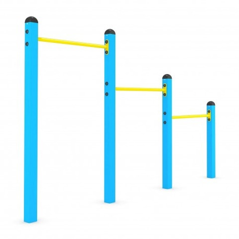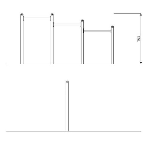 Palestra Con Esercizio Di Rafforzamento MuscolareN.B. Tutte le attrezzature sono progettate e realizzate in conformità alle specifiche normative di sicurezza UNI EN 1176 - UNI EN 1177Esercizio di rafforzamento muscolare: appendersi alle sbarre, sollevarsi ed abbassarsi ripetutamente.L'attrezzo è costituito da 3 barre orizzontali e 4 montanti in acciaio profilo 80x80 mm, zincato e verniciato a polvere; viti e dadi nascosti da cappucci colorati in plastica. DATI DIMENSIONALI:Altezza totale: cm 165Altezza di caduta: cm 150Area d’ingombro: cm 302 x 308Spazio minimo: cm 602 x 308 x 315 hArea d’impatto: mq 16,6Età d’uso consigliata: 3/14 anniGioco certificato EN1176-2008