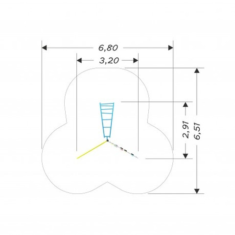 Palestra Per Arrampicata Per BambiniN.B. Tutte le attrezzature sono progettate e realizzate in conformità alle specifiche normative di sicurezza UNI EN 1176 - UNI EN 1177L'attrezzo è costituito da1 montante centrale in acciaio profilo 80x80 mm, zincato e verniciato a polveri; viti e dadi nascosti da cappucci colorati in plastica;2 pannelli d’arrampicata con prese;1 rete in corda;1 scala curva in acciaio zincato e verniciato. DATI DIMENSIONALI:Altezza totale: cm 194Altezza di caduta: cm 180Area d’ingombro: cm 350 x 311Spazio minimo: cm 690 x 651 x 344 h Area d’impatto: mq 30 Età d’uso consigliata: 3/14 anniGioco certificato EN1176-2008
