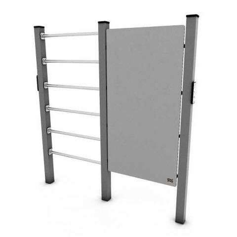 Parete Con Spalliera Per Esercizi Ginnici all'ApertoN.B. Tutte le attrezzature sono progettate e realizzate in conformità alle specifiche normative di sicurezza UNI EN 1176 - UNI EN 1177Composizione per esercizi ginnici all’aperto con struttura portante in pali da cm 10x10 in acciaio zincatoverniciato con tappi di chiusura in plastica, barre orizzontali e maniglie in acciaio inox; pannelli, sedili e pianiin HPL, targhetta con istruzioni per gli esercizi.L’ancoraggio va effettuato su superficie piana a 80 cm di profondità.Attrezzi a norma EN 16630:2015  DATI DIMENSIONALI:Altezza totale: cm 242Altezza di caduta: cm 233Area d’ingombro: cm 231 x 12Spazio minimo: cm 641 x 422 x 392hArea d’impatto...