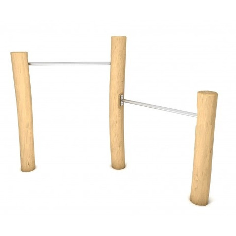 Sbarre In Acciaio Con Montanti In Legno Di RobiniaN.B. Tutte le attrezzature sono progettate e realizzate in conformità alle specifiche normative di sicurezza UNI EN 1176 - UNI EN 1177Sbarre in acciaio con montanti in legno di robinia, per lo sviluppo delle capacità motorie la percezione del proprio corpo, equilibrio e coordinazione e la consapevolezza spaziale del bambino.Per la progettazione di un parco giochi naturale per bambini per stimolare attraverso i sensi e i movimenti una maggiore conoscenza del proprio corpo, attraverso stimolanti giochi di abilità ed equilibrio. Composta da: 2 sbarre in acciaio 3 montanti in legno di robinia Ø 18 cm senza spigoli vivi DATI DIMENSIONALI:Altezza totale fuori terra: cm 155Altezza di caduta: cm 126Area d’ingombro: cm 200 x 100Spazio minimo: cm 500 x 400 x 155Area d’impatto: mq 15,2Piastre: mq 20Età d’uso consigliata: 3-14 anniGioco certificato EN1176-2008