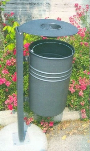 Cestino Portarifiuti a Forma Cilindrica Realizzato a Freddo a Lamiera PrezincataN.B. Tutte le attrezzature sono progettate e realizzate in conformità alle specifiche normative di sicurezza UNI EN 1176 - UNI EN 1177Cestino a forma cilindrica realizzato dalla calandratura a freddo di lamiera prezincata sp. 10/10, completo di reggisacco. Il cestino è fornito di coperchio ribaltabile idoneo per asportare il sacco dei rifiuti, completo di posacenere estraibile con rete per spegnere le sigarette. Il cestino è sostenuto da un tubolare in acciaio 120x40 mm fornito di piastra base per il fissaggio al suolo o senza piastra per l’annegamento del palo stesso.Tutte le parti metalliche zincate sono verniciate a polveri termoindurenti secondo le diverse tinte RAL.DATI DIMENSIONALI: Diametro cesto: cm 32 Altezza cesto: cm 52 Altezza palo fuori terra: cm 100 Capacità: lt. 40 Peso: kg 21