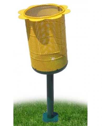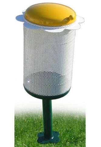 CESTINO PORTARIFIUTI FIOREN.B. Tutte le attrezzature sono progettate e realizzate in conformità alle specifiche normative di sicurezza UNI EN 1176 - UNI EN 1177Cestello realizzato in lamiera forata d'acciaio zincato con fondo bombato in lamiera stampata.Corona in lamiera d'acciaio sagomata con tecnologia laser e fermasacco interno. Palo di sostegno in tubo tondo d'acciaio zincato dotato di piastra sagomata con tecnologia laser.Versione CC dotata di coperchio ribaltabile in lamiuera di acciaio bombata e pomolo maniglia per il sollevamento DATI DIMENSIONALIDiametro cesto: cm 35Altezza cesto: cm 40Altezza palo fuori terra: cm 125 (PERSONALIZZABILE)Capacità: lt. 36