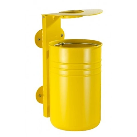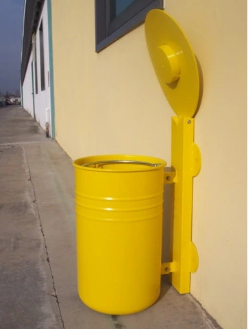 Cestino Portarifiuti Per Ancoraggio a Muro a Forma Cilindrica Con PosacenereN.B. Tutte le attrezzature sono progettate e realizzate in conformità alle specifiche normative di sicurezza UNI EN 1176 - UNI EN 1177Cesto portarifiuti per ancoraggio a muro a forma cilindrica ottenuto dalla calandratura a freddo di lamiera pre zincata spessore 10/10, chiuso tramite elettro saldatura.La parte superiore viene bordata con un anello elettrosaldato ottenuto da tornitura in lastra, mentre la parte inferiore viene chiusa con un fondello bombato e forato al centro per facilitare lo scolo di acqua meteorica o di periodica pulizia.Viene fornito completo di anello reggi-sacco in acciaio.All’estremità superiore del tubolare è fissato un coperchio in lamiera spessore 4mm, ribaltabile per facilitare la rimozione del sacco dei rifiuti, completo di posacenere estraibile Ø150 con rete spegni sigarette.Tutte le parti metalliche sono zincate e verniciate a polveri poliestere termoindurenti.La viteria è in acciaio inox.DATI DIMENSIONALI: DIAMETRO: 335 mm ALTEZZA CESTELLO: 525 mm ALTEZZA TOTALE CON COPERTURA: 695 mm CAPACITÀ: 42 litri
