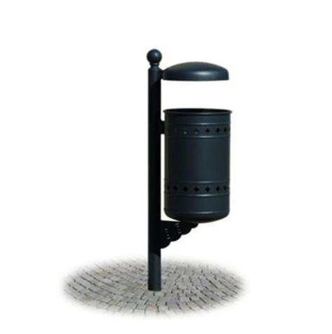 Cestino Portarifiuti Per Centro Storico Con TettuccioN.B. Tutte le attrezzature sono progettate e realizzate in conformità alle specifiche normative di sicurezza UNI EN 1176 - UNI EN 1177Cestello realizzato in lamiera sagomata d’acciaio zincato sp. 10/10 dimensioni cm 30 x 51.Fondo del cestello realizzato mediante disco di lamiera stampato sp. 15/10 con fori per lo scolo delle acque piovane.Palo di sostegno realizzato in tubo tondo d’acciaio zincato Ø mm. 60 x 2 con all’apice elemento decorativo a sfera in fusione.Tettuccio realizzato con disco di lamiera stampato sp. 30/10. Mensola di sostegno del cestellorealizzata in lamiera sagomata con tecnologia laser.Sistema di svuotamento mediante sgancio con chiave a brugola fornita in dotazione.Le parti in acciaio sono zincate e verniciate a polveri DATI DIMENSIONALIDiametro cesto: cm 30Altezza cesto: cm 41Altezza palo fuori terra: cm 108Capacità: lt. 36