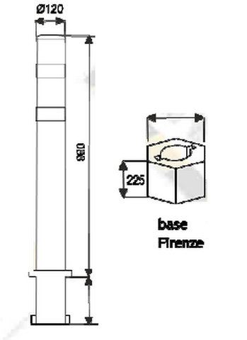 Dissuasore Paletto 'Firenze' completo di Due Fasce Rifrangenti Diametro 120mm Altezza 990 mm + 195 I
