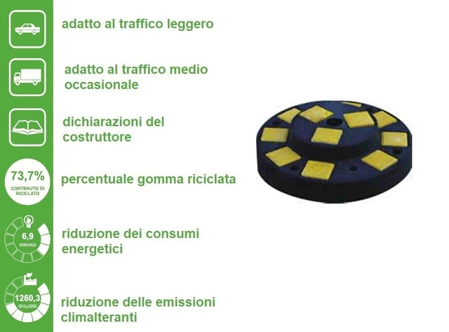 Zavorra - Base d'Appesantimento per Segnaletica Stradale Mobile Diametro 62x h 17 cm, Dotata di 4 Cave per Fissaggio con Tasselli 14x140mm, Foro Centrale diam 60 mm più 2 Fori diam. 34mm per Supporto Archetto Zincato La Zavorra è realizzata in gomma riciclata con alloggiamenti per blocchetti in calcestruzzo che rendono più gradevole il prodotto e contemporaneamente lo appesantiscono. La zavorra può essere utilizzata come base per la segnaletica provvisoria ma anche definitiva, permette di ottenere un dissuasore di sosta con l'inserimento di un archetto fissato al di sotto della zavorra tramite due viti che ne impediscono lo sfilamento. UtilitàGrazie alla particolare stabilità questa base può essere utilizzata anche comebasamento di sostegno per cestini porta rifiuti, paletti parapedonali e simili.Materiali CostruttiviGomma riciclata, blocchetti in cemento conf.UNIEN1438 (esclusi).ColoriGli elementi in gomma sono di colore nero,i blocchetti di cemento sono disponibili nei colori giallo ocra, antracite, bianco e rosso mattone.FissaggioTasselli 14x140 (incluso).Caratteristiche tecnicheDimensioni: Base circolare diametroaltezza 400mm, lunghezza 1000mm, profondità 400mm.Norme di riferimentoD.M.n.203 DEL 08/05/2003Codice della Strada (D.Lgs del 30 aprile 1992, n. 285 e successivi aggiornamenti);Decreto del Presidente della Repubblica n.610/96;POSSIBILITA' DI ACQUISTARE ARCHETTO PORTATARGA PER ZAVORRA ( ORDINE MINIMO PZ 10 )AL PREZZO DI €54,75 cad.