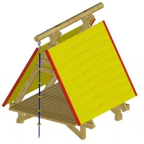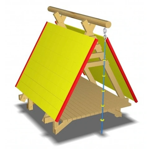 Casetta Realizzata Interamente In Pino Scandinavo N.B. Tutte le attrezzature sono progettate e realizzate in conformità alle specifiche normative di sicurezza UNI EN 1176 - UNI EN 1177Casetta realizzata interamente in pino scandinavo impregnato a pressione in autoclave con Sali esenti da cromo in conformità alle norme DIN 68800 e RAL.Il pavimento, realizzato con tavole in pino nordico sezione 92x45 mm, è fissato ad un’altezza di 40 cm da terra e appoggia su pali, tipo palafitta; l’accesso è consentito su entrambe le facciate.Il tetto è realizzato con profili di sostegno in pino nordico sezione 110x58 mm e rivestito in perline di pino piallate su entrambe le facce di spessore 21 mm.Una grossa trave, alla quale viene agganciata una fune diam. 18 mm composta da 6 trefoli in acciaio ricoperti di fibra sintetica che sporge dal tetto e permette l’uscita tipo “liana”.     DATI DIMENSIONALIAltezza totale: cm 200Altezza caduta: cm 200Area ingombro: cm 200 x 230Spazio minimo: cm 590 x 575 x 370 (h)Area d’impatto: mq 25Età d’uso consigliata: 2/12 anni