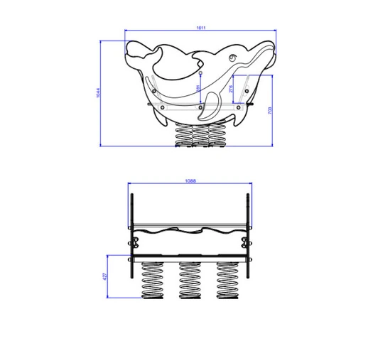 Delfino a Molla in Polietilene per Parco Giochi per Bambini - ITALFROM®N.B. PRODOTTI CERTIFICATI PER ENTI PUBBLICI I giochi a molla ITALFROM® sono ideali per gli spazi dedicati ai bambini per dimenticare tutto ciò che li circonda e lasciare che la loro immaginazione corra senza limiti.  Che si tratti di cavalli, moto oppure tartarughe, da noi può trovare una vasta gamma i giochi a molla dalle più svariate forme e per diverse aree tematiche. I nostri giochi a molla per bambini vi lasceranno sempre con un sorriso e vi faranno sognare. Descrizione• Età d’uso : 0 – 12 anni. • Struttura adatta per aree ad uso pubblico, interne ed esterne.• I nostri prodotti sono progettati, costruiti e certificati in conformità alla norma UNI EN1176 - 1/6 - 2017.• Ingombro massimo struttura installata : circa lungh. 161 x largh. 108 x alt. 105 cm • Altezza di caduta : inferiore a 60cm - vedi dettaglio nel disegno quotato in allegato • Sagoma in polietilene estruso, colorato in massa e resistente agli UV con un valore di 8 ( scala di lana da 1 a 8 ) e riciclabile al 100 %.• Accessori quali manopole e copridadi sono realizzati in polietilene con le stesse caratteristiche della sagoma. • N.4 molle altezza 360mm - diametro 180mm - diametro filo 17.5mm • Staffa di collegamento molla/sagoma realizzata in ferro e zincata a caldo• Staffa per installazione nel terreno realizzata in ferro e zincata a caldo • Staffa per installazione in superfici rigide (es. platee di cemento) realizzata in ferro sp.5mm e zincata a caldo• Bulloneria in acciaio zincato.