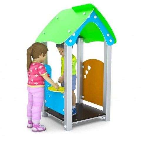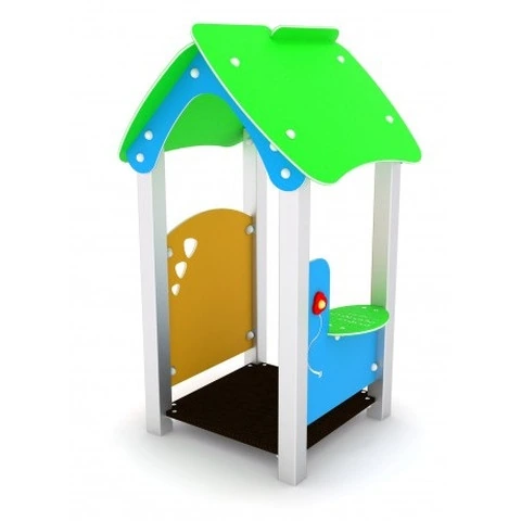 Gioco Casetta Adatta Alla Prima Infanzia Per Esterni e Parchi Pubblici 396 x 398 x H165cmN.B. Tutte le attrezzature sono progettate e realizzate in conformità alle specifiche normative di sicurezza UNI EN 1176 - UNI EN 1177 Casetta gioco da esterni adatta alla prima infanzia, per parchi pubblici, scuole materne ed ogni situazione aperta al pubblico, spiagge, ristoranti, villaggi turistici, ed alberghi.Montanti in tubolare di acciaio inox sezione 80 x 80 mm, elementi di tamponamento in polietilene alta densità PEHD sagomato al pantografo.Piani di calpestio in polietilene alta densità PEHD con superficie antiscivolamento.Composta da:1 piano di calpestio realizzato in PEHD anti scivolo sp.21 mm1 piano di calpestio realizzato in PEHD anti scivolo sp.21 mm1 tetto in PEHD1 pannello gioco  balconcino in PEHD con  gioco di manipolazione1 pannello finestra in PEHD  con incisioni DATI DIMENSIONALI Altezza totale: cm 165Altezza di caduta: cm 10Area d’ingombro: cm 96 x 98Spazio minimo: cm 396 x 398 x 165 hArea d’impatto: mq 16Età d’uso consigliata: 1/8 anni