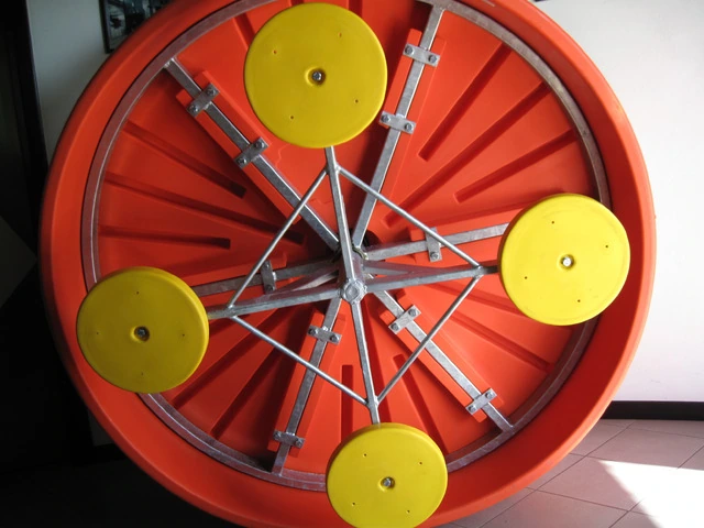 GIRAMONDO è la prima giostra interamente realizzata in plastica (PE ad alta densità) nella scocca superiore. GIRAMONDO offre i massimi standard di sicurezza, è conforme alle normative europee e certificata dall’Istituto Italiano Sicurezza dei Giocattoli. Ideale da 0 fino a 14 anni può essere utilizzata anche da 8 bambini contemporaneamente. Grazie al suo polietilene robustissimo e resistente ai raggi U.V. e a tutte le intemperie la giostra GIRAMONDO è ideale per parchi gioco, scuole, asili, villaggi turistici e stabilimenti balneari. Grazie all’eccezionale durata e robustezza del polietilene, GIRAMONDO non necessita di particolari manutenzioni da parte degli installatori. Disponibile anche nella versione con rallentatore di rotazione (freno). Scocca principale, copertura per lo scorrimano, anello superiore e pozzetto d’ispezione e manutenzione sono prodotti in polietilene ad alta densità tramite stampaggio rotazionale. La struttura comprende un piedistallo sottostante zincato a caldo che sorregge il perno centrale di rotazione. La piattaforma rotante è costituita da un telaio circolare con raggi in acciaio zincato a caldo. La boccola centrale alloggia due cuscinetti a sfera di cui quello posto al di sotto è portante. Caratteristiche tecniche Disponibile in diverse combinazioni di colori e personalizzabile con il logo del cliente. Misure: mm 1800 (diametro) x mm 900 (altezza) Peso: Kg 108 La giostra va fissata a terra