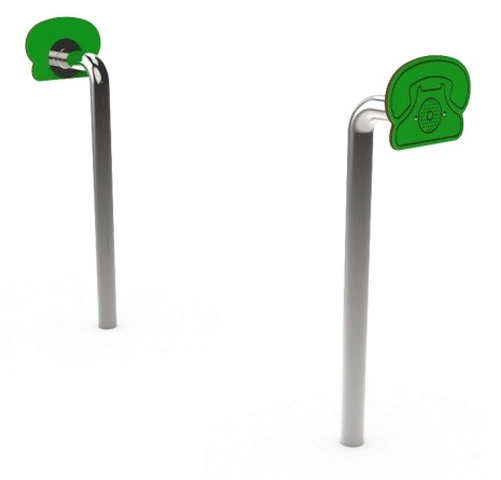 Telefono Senza Fili Giochi Per Bambini - In Plastica Riciclata - Colore Verde o RossoN.B. Tutte le attrezzature sono progettate e realizzate in conformità alle specifiche normative di sicurezza UNI EN 1176 - UNI EN 1177 Si tratta di Giochi Interattivi Realizzati in Plastica Riciclata Seconda Vita proveniente 100 % da raccolta differenziataGioco di comunicazione facilmente accessibile per sviluppare le capacità di socializzazione adatto tutte le fasce d’età, anche a bambini con disabilità motorie. Composto da - una coppia di tubolari in Acciaio Inox AISI 304 con sagoma telefono in plastica PEHD riciclata. - Tubo di collegamento sotterraneo in PEHD di lunghezza standard 15 metri, personalizzabile.- Componenti in PEHD in plastica proveniente da raccolta differenziata (certificata PSV da IIP).- ferramenta generale in acciaio inox.