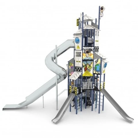 Torre Con Scivoli Compreso Quello A Tubo N.B. Tutte le attrezzature sono progettate e realizzate in conformità alle specifiche normative di sicurezza UNI EN 1176 - UNI EN 1177 Struttura in acciaio zincato e verniciato a polvere o acciaio inossidabile di 80 x 80 cmPiattaforme e pareti da arrampicata realizzate in resistente piastra HPL antiscivolo e impermeabileTetti e pannelli laterali realizzati in durevole lastra HDPE, resistente alle condizioni atmosferichePannelli in policarbonato trasparente con una stampa permanente resistente ai graffi e condizioni meteorologicheScivoli in acciaio inossidabile con pannelli laterali in HDPE resistentiPannelli didattici ed elementi mobili realizzati in lamiera HDPE, resistente a condizioni meteoTavolo da disegno realizzato con lastra HPL durevole, resistente agli agenti atmosfericiFinestre a labirinto in policarbonato, sfere in materiale sinteticoPietre durevoli per l'arrampicata in composito di resina poliestere con cariche mineraliFuni d'acciaio in treccia di polipropilene, collegate con elementi in plastica resistente, acciaio inossidabile o alluminioSedili certificati e sicuriBarre, scale e corrimano in acciaio inossidabileViti in acciaio inox e / o viti ricoperte con tappi in plasticaTestate sicure sulla parte superiore della struttura in gomma o polipropileneDATI DIMENSIONALILunghezza: cm 1053Larghezza : cm 79829VP3440 SPACE 3440Altezza totale: cm 950Altezza di caduta: cm 270Spazio minimo: cm 1355 x 1122 x 803hArea d’impatto: mq 80,4Età d’uso consigliata: 4/14 anni