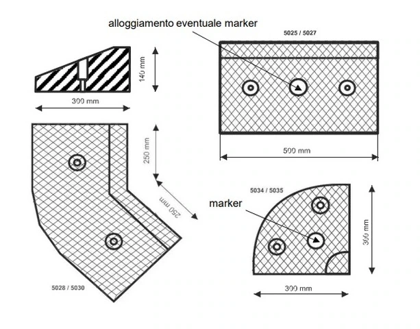 Cordolo 'Maxi' Multifunzione Costituiti da Elementi Componiibili in Gomma 'Maxi' è un cordolo stradale cuneiforme eco-sostenibile, costituito per oltre il 90% di gomma riciclata. Per fornire una visibilità ottimale del prodotto, a richiesta, può essere verniciato con vernice poliuretanica per aumentare la resistenza agli agenti atmosferici. Al centro dell’elemento lineare è possibile inserire un marker in cristallo. Gli elementi a 90° sono già completi di marker in cristallo. Maxi è un cordolo multifunzionale che può essere utilizzato sia per la delimitazione di marciapiedi, aiuole, isole di traffico, rotatorie, che per la realizzazione di restringimenti della carreggiata per rallentare il traffico. Per quanto riguarda le rotatorie, la conformazione del cordolo in funzione del raggio delle stesse non comporta un sovrapprezzo. Il cordolo 'Maxi' presenta la forma a cuneo che lo rende idoneo ad ogni tipo di traffico; il fissaggio al suolo è garantito, per ogni cordolo, da due tasselli e a richiesta è fornito un marker in cristallo da inserire nell'idoneo alloggiamento predisposto.UtilitàIl prodotto ha la funzione di delimitare marciapiedi,aiutole, isole di traffico, rotatorie. Inoltre occorre per la realizzazione di restringimenti della carreggiata per rallentare il traffico. Modalità d'installazioneAncorare il cordolo Maxi al suolo con n. 2 tasselli 12x160 mm Materiali CostruttiviGomma riciclataColoriElementi in gomma:  nero - giallo - rosso - biancoFissaggio2 Tasselli di fissaggio 12x160 completi di tirafondi e rondelle (4 tasselli 12x160 mm per gli elementi a 90°)Su richiesta: Marker in cristalloCaratteristiche tecnicheNorme di riferimentoArt. 176 del Regolamento di Esecuzione e di Attuazione del Codice della StradaArt. 177 del Regolamento di Esecuzione e di Attuazione del Codice della StradaMinistero delle Infrastrutture e dei Trasporti, prot. nr.3151 del 30 dicembre 2002D.M. 5 Febbraio 2015 (Criteri ambientali minimi per l'acquisto di articoli per l'arredo urbano)D.M. 8 Maggio 2003, n. 203D.M. 5 Novembre 2001, n.6792