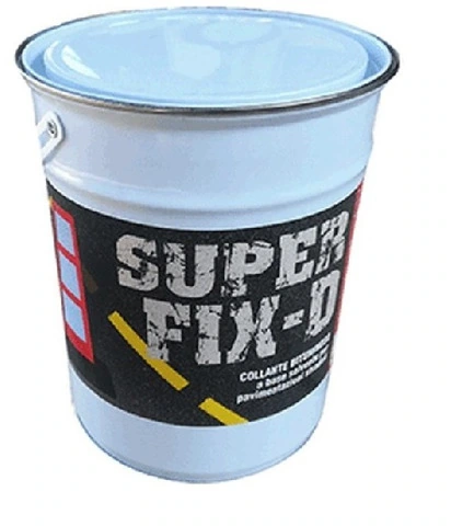 CODICE ARTICOLO: ITALFROM_9953 Collante Bituminoso Specifico per Incollaggi Forti di Defleco - Coni e Altri Articoli in Gomma Il SUPER FIX-D è un collante costituito da bitume in soluzione elastomerizzato con particolari macromolecole che rendono il prodotto essiccato impermeabile e particolarmente elastico. Viene utilizzato per l’incollaggio dei defleco su pavimentazioni stradali. Dettagli prodotto- Bituminoso (pasta tixotropica nera) a base solvente per incollaggio delineatori- Adesivo di consistenza pastosa, applicabile con spatola, di facile utilizzo- Rapida essiccazione in qualunque condizione atmosferica- Utilizzato per l'ancoraggio al fondo stradale di segnaletica in gomma- Peso: 5,2 Kg