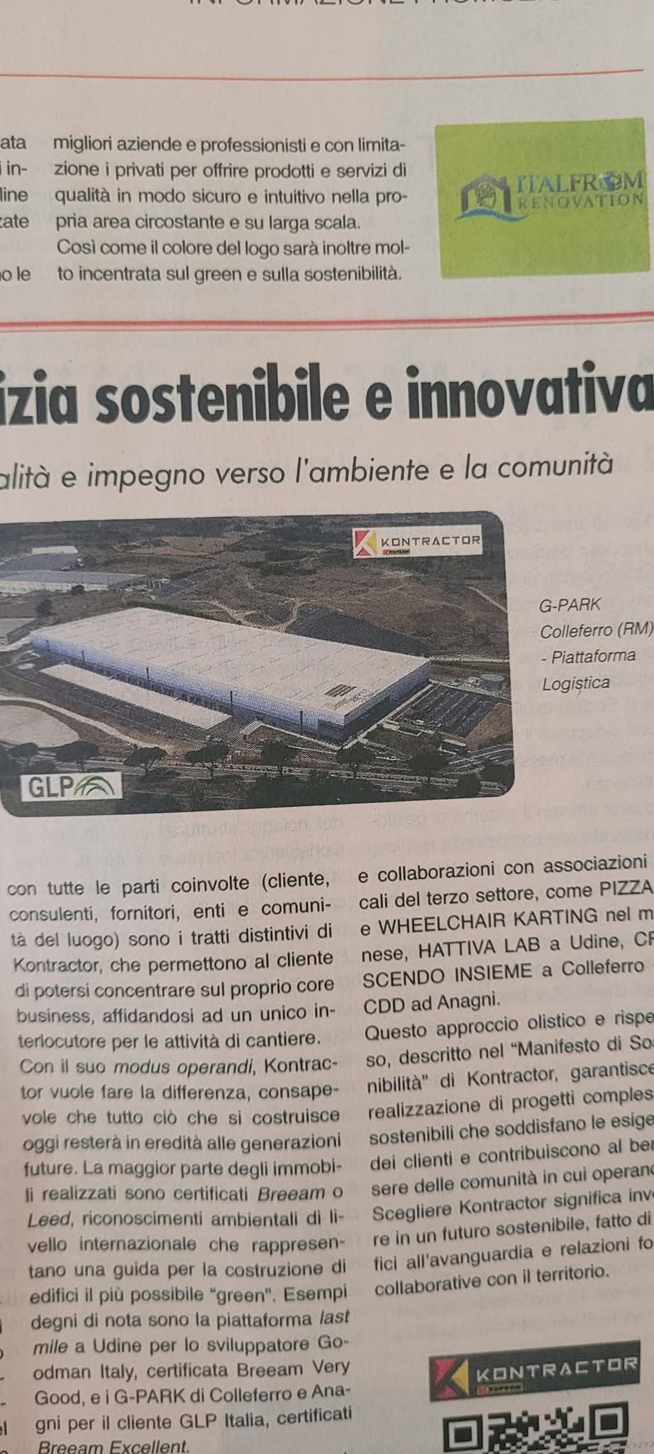 WWW.ITALFROMRENOVATION.COM L' intervista sul Giornale il Sole 24 Ore - Edilizia e Costruzioni Realtà Eccellenti