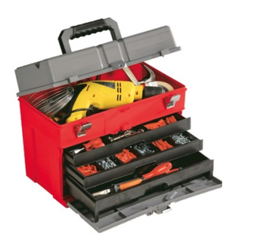 La cassetta Portautensili fa parte della Plano 'Professional Line' è ideale come contenitore professionale per articoli di ferramenta, utensileria, elettrici, elettronici.La cassetta porta attrezzi componibile PLANO Professional 855 realizzata in polipropilene, è dotata di 3 cassetti portautensili - portaminuterie con sportello di sicurezza.Chiusure in acciaio predisposte per la chiusura con lucchetto.Caratteristiche: Parte superiore per utensili ingombranti; 3 cassetti portautensili - portaminuterie con sportello di sicurezza; Numero di scomparti:da 16 a 32; Chiusure in acciaio; Maniglia con impugnatura ergonomica antiscivolo; Possibilità di lucchetto; Materiale: Polipropilene; Dimensioni: 56,50x38x33; Peso: 3,7 KG