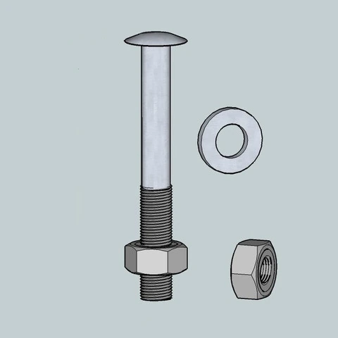 BULLONE A TESTA TONDA CON DADO ESAGONALE E RONDELLA 12X240 mm