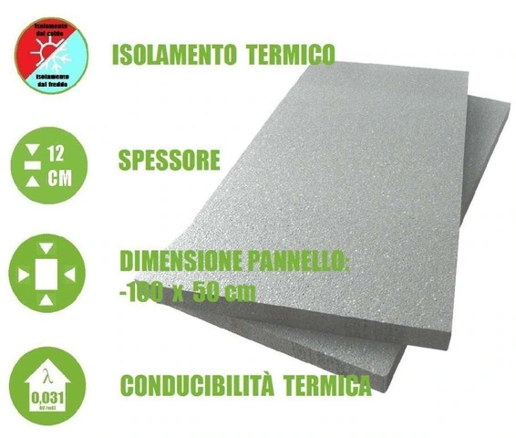 CODICE ARTICOLO: ITALFROM_15286 PANNELLO IN EPS 100 CON GRAFITE CERTIFICATO CAM 'POLISTIRENE ESPANSO SINTETIZZATO' PER ISOLAMENTO TERMICO - 100x50x12 cm DESCRIZIONE PRODOTTOLa lastra per isolamento termico in Polistirene Espanso Sinterizzato è prodotta con materie prime di elevata qualità, e ricavata per taglio a filo caldo da blocchi preventivamente stagionati. L'EPS ha un peso molto ridotto poiché è composto dalla maggior parte di aria, questo fa si che risulta facile da posarlo in opera.DIMENSIONI PANNELLO100x50x12 cm.PARAMETRI AMBIENTALIL'EPS anche se è un materiale sintetizzato, è al 100% riciclabile e atossico. Le lastre sono utilizzate per l'isolamento termico degli edifici in quanto risulta determinante per il risparmio energetico, questo implica un minor costo per la climatizzazione invernale ed estiva. Il sistema cappotto è un rivestimento termico degli edifici in grado di garantire, in modo sicuro, l'isolamento dal caldo e dal freddo, con miglioramento sostanziale del comfort abitativo e riduzione dell'impatto ambientale.DETRAZIONI FISCALI PER IL RISPARMIO ENERGETICOL'utilizzo di materiali coibenti, come l'EPS, permette di usufruire delle agevolazioni fiscali previste per gli interventi di riqualificazione energetica sugli edifici esistenti. L'agevolazione consiste nell'usufruire di detrazione fiscali dall'Irpef o dall'Ires. La legge di bilancio 2018 ha confermato l'aliquota di detrazione al 65% per gli interventi di coibentazione dell'involucro opaco.