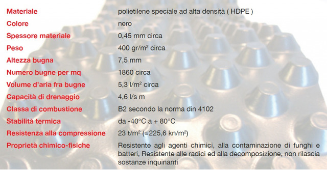 CODICE ARTICOLO: ITALFROM_6624 MEMBRANA BUGNATA La membrana bugnata impermeabilizzante è ideale per proteggere le fondazioni ed i muri interrati, realizzato in HDPE, viene posato sulla superficie delle murature e consente una totale separazione tra i muri, sia di calcestruzzo che in muratura, e l’umidità del terreno, grazie alla presenza di oltre 1850 bugne al mq, che tenendo staccata la membrana di circa 7,5 mm, formano un volume d’aria pari a 5,3 l/mq.La separazione tra il terreno di scavo e getto di platea, garantisce l’impermeabilizzazione delle fondazioni che risultano protette. Nelle costruzioni sotterranee e nelle opere di ingegneria civi...