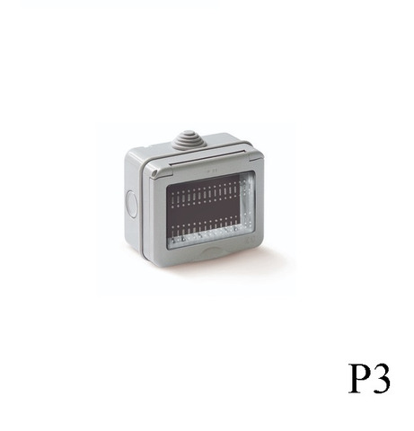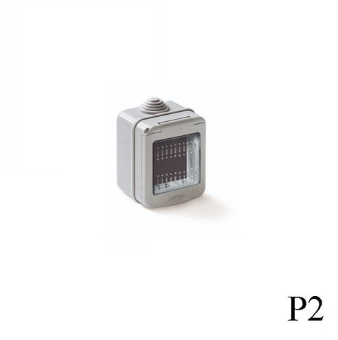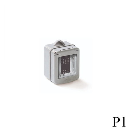 CASSETTA DA PARETE X ESTERNO 1P. IP55Contenitore da parete con portello.Grado di protezione IP 55Disponibile in 3 modelli:- P1 - 1 Posto per interruttore/presa - 12,4x7,2x6,4 cm- P2 - 2 Posti per interruttore/presa - 8,1x7,8x6,0 cm- P3 - 3 Posto per interruttore/presa - 10,0x12,5x6,3 cm