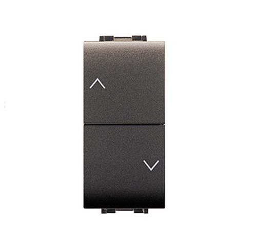 DOPPIO PULSANTE X TAPPARELLA Nero/Grigio/Bianco Doppio pulsante interbloccato a norma di sicurezza.E' dotato di interblocco meccanico, che permette di premere un tasto alla volta in modo tale da garantire l'integrità elettrica del motore a cui è abbinato.E' utilizzato tipicamente come comando di tapparelle motorizzate. Disponibile in 3 colori:-Nero-Grigio-Bianco