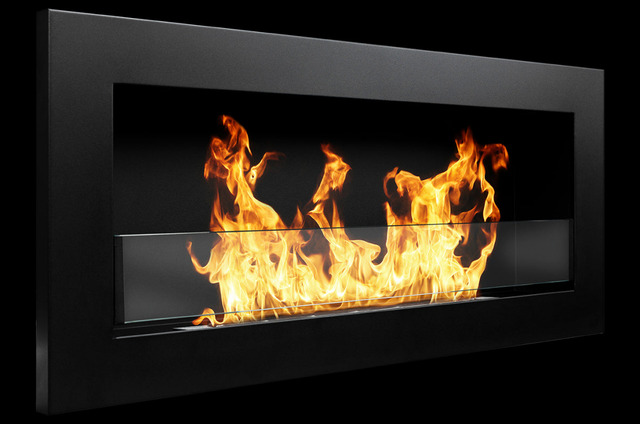 Camino a bioetanolo da parete o incasso Livorno Nero L 90 x P 12 x H 40 con vetro