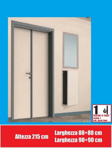 CODICE ARTICOLO: ITALFROM_7427 Porta Interna a Battente in PVC colore Bianco o Grigio Chiaro H215xL80+80/90+90 cm Spessore Muro da 10,5 a 13 cm - ITALFROM® Caratteristiche :Applicazioni : Scuole, Ambienti Pubblici, Alberghi, Ospedali e/o Uffici.Pannello in PVC : composto da profili pluricellulari estrusi in pvc rigido da mm 125x40 di spessore, riquadro con profilo a battuta e zoccolino in pvc, irrigidito internamente su due lati da un estruso in pvc rigenerato.Stipite : (Telaio-Imbotte) realizzato con profilo pluricellulare estruso in pvc, rinforato internamente su due lati con profilo estruso in PVC rigenerato, dalla forma arrotondata e con l'aggiunta della guarnizione di battuta.Listra: (Cornice-Mostra) in pvc estruso, fissato a scatto sullo stipite.Certificazione : Classe 1 reazione al fuocoCerniere: del tipo Anuba plastificate di colore Nere o Bianche.Maniglie : in resina di colore Nere o Biache con chiusura chiave tipo Patent.Altro: Possibilità di realizzare misure su richiesta Per preventivi tecnici personalizzati siamo a tua disposizione, mail reparto: ************************* - Se richiesto SERVIZIO MONTAGGIO IN TUTTA ITALIA Immagini a scopo illustrativo