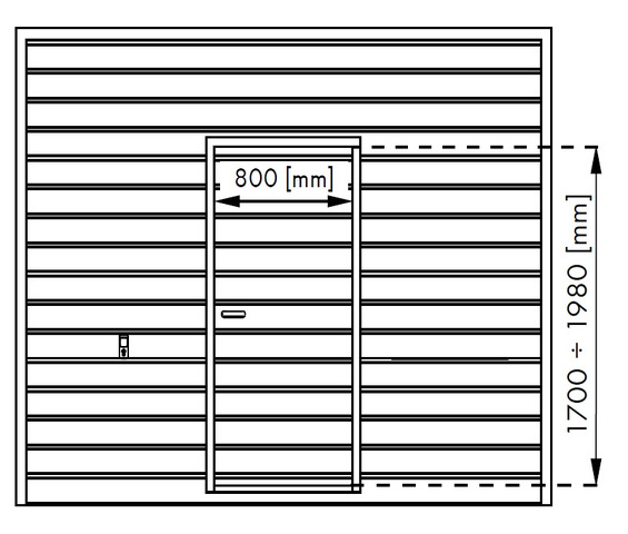 CODICE ARTICOLO: ITALFROM_7849 Porta Pedonale per Portone Sezionale Italfrom Unipro La porta pedonale in tutti i colori senza doghe, doghe alte , e nei colori 'quercia dorata', 'noce' a doghe basse non è disponibile nei portoni da Ho= (2260÷2430; 2810÷2990) con la soglia standarde Ho=(2230-2390; 2780-2900) con la soglia bassa. Nelle dimensioni Ho=(2000-2400) x So (3500-5500) la porta pedonale può essere inserita solo in posizione centrale. • La larghezza standard della luce di passaggio è pari a 800 [mm], l'altezza della luce di passaggio può essere pari da 1700 [mm] a 1980 [mm] a seconda dall'altezza del portone e dai pannelli applicati.• Le dimensioni minime del portone, nel quale è possibile applicare la porta di passaggio sono pari a 2000 x 2000 [mm] (So x Ho).• Possibilità di realizzare la porta pedonale nel portone con pannello in alluminio finestrato o con feritoie di ventilazione per So = 2400 [mm].• Listello gocciolatoio (standard).• Soglia dall'altezza ~100 [mm] (compresa guarnizione del portone dall'altezza~40 [mm]).• Bordo inferiore della porta dotato di guarnizione a spazzola.• La porta può essere realizzata nel portone con architrave minima di 140 [mm].Non concerne RenoSystem.• La porta nello standard viene montata al centro della larghezza dell'anta del portone, il senso di apertura: a destra o a sinistra verso l'esterno, dotata di maniglia bilaterale con rosetta e serratura a cilindro (tre chiavi).• Sistema di chiave unica (standard) - la serratura nella porta pedonale e la serratura nel portone sono dotate dello stesso cilindro (non concerne portoni dotati di serratura con cilindro antiscasso o di serratura supplementare nell’porta pedonale).• La ferramenta della porta come anche la ferramenta superiore ed inferiore del portone sono realizzate in alluminio.• La porta pedonale abbassa ulteriormente 'Hj' di circa 50 [mm].• L'opzione della porta pedonale nei portoni automatici comprende il sensore di apertura della porta (il supplemento per il sensore viene aggiunto automaticamente conformemente al suo prezzo).• Limitatore dell’apertura della porta pedonale - Standard.Chiudiporta con cremaglieraIl chiudiporta può essere applicato alla porta pedonale fissata nel portone manualeo automatico. È fissato alle ferramenta superiori della porta pedonale dall'esternodel portone.Chiudiporta a catenaIl chiudiporta può essere applicato alla porta pedonale con luce di passaggio standarddi 800 [mm] fissata al portone manuale raccomandato nell'automatico. Fissato tral'anta della porta pedonale ed il pannello del portone. L'applicazione non è possibile,se il secondo pannello dal basso è in alluminio.Colore aretek della porta di passaggioVersione standard: Ferramenta della porta di passaggio – alluminio naturale. Versione opzionale: Ferramenta della porta di passaggio – in colore RAL. (2) - Il colore simile al colore dell'anta esterna del portone allunga il termine della realizzazione. La possibilità della realizzazione deve essere accordata con il Reparto Commerciale. Porta pedonale con soglia bassaNei portoni con So = 5500 [mm] esiste la possibilità di applicare la soglia bassa nella porta pedonale, a condizione, che il primo pannello dal basso sia un pannello in acciaio. La soglia è realizzata di profilo in alluminio. Altezza della soglia con guarnizione fino a 30 [mm]. Disponibile con guide per portoni sezionali con molle a torsione fissate davanti dall'architrave, portone con doppie guide orizzontali; portoni sezionali con molle a torsione fissate all'estremità delle guide orizzontali, portone con doppie guide orizzontali; portoni sezionali con molle a torsione fissate davanti dall'architrave, portone con singole guide orizzontali.Limitatore dell’apertura della porta pedonaleLimita l'angolo dell'apertura della porta pedonale proteggendo l'anta del portone dal danneggiamento durante un'apertura totale, incontrollata della porta. Permette l'apertura della porta pedonale di un angolo di 105°. Fissato nel pannello superiore della porta, non riduce la luce dichiarata dell'apertura.Serratura supplementare nella porta pedonaleNella porta pedonale si può applicare una serratura supplementare ad incasso con cilindro o cilindro di sicurezza. L'applicazione non è possibile nei portoni, nei quali il terzo pannello dal basso è un pannello in alluminio.Serratura a tre punti di chiusura nella portinapedonaleChiusura attraverso chiavistelli in acciaio posizionati sui tre pannelli (dal pavimento). I chiavistelli sono bloccati in posizione finale ciò aumenta la loro resistenza per tentativi di sforzamento dell’anta. Non è disponibile per pannelli in alluminio nè insieme all’opzionale serratura aggiuntiva nella portina pedonale.Allineamento della struttura del portone con la porta lateraleDue portoni dalle stesse dimensioni, dei quali uno è dotato di porta pedonale, possono presentare delle differenze nella realizzazione (differenze nei livelli delle doghe, diverse ferramenta inferiori). La possibilità della realizzazione deve essere accordata con il Reparto Commerciale.